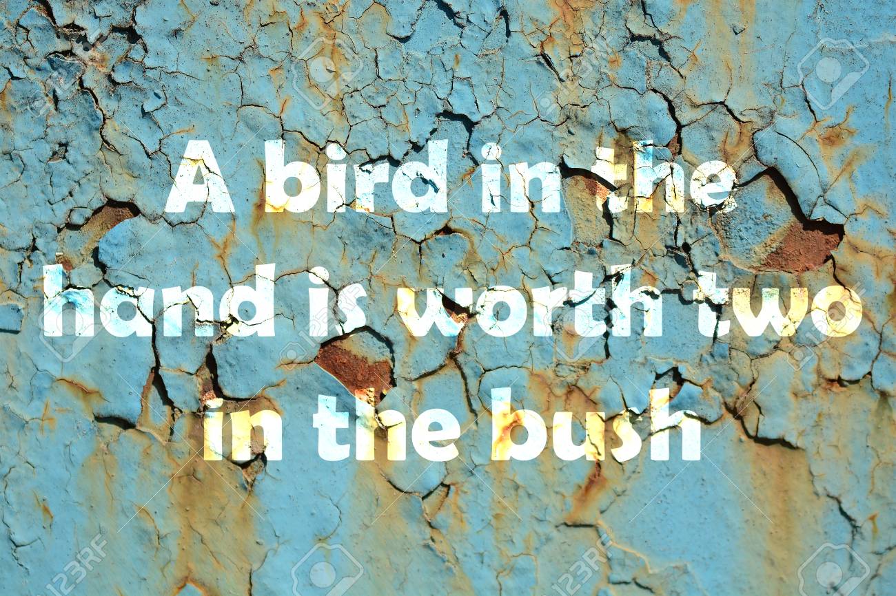 Better one byrde in hande than ten in the wood. Used in 13th century latin (plus valet in manibus avis unica quam dupla silvis .in the woods, rather than .in the bush). Origin this proverb has its origins in medieval falconry, where a bird (falcon) in hand was more valuable than two in the bush (the prey). The earliest known usage in english is in the 15th century in the life of st katherine by john capgrave. So always be happy with what you have and don't be avaricious.